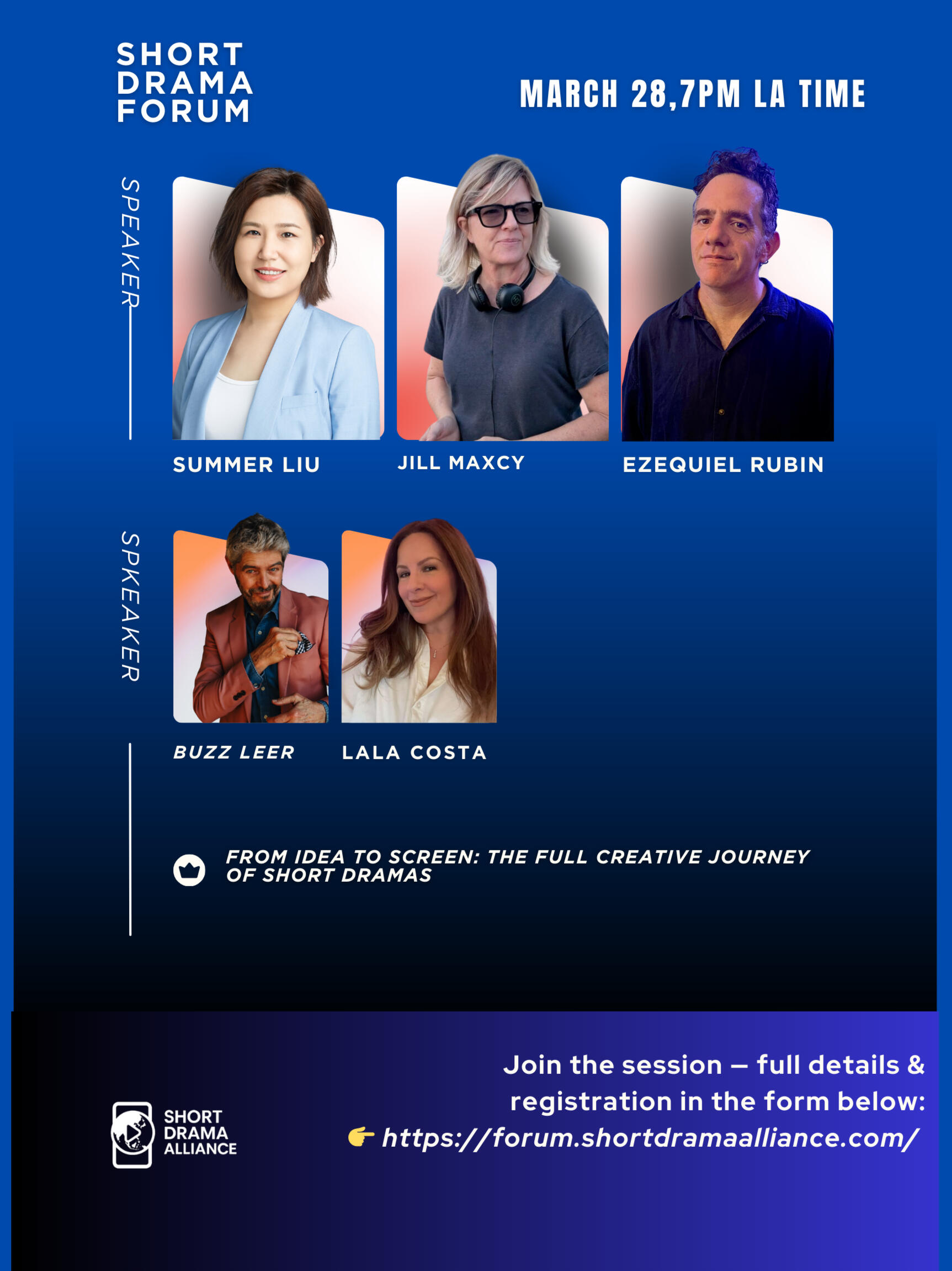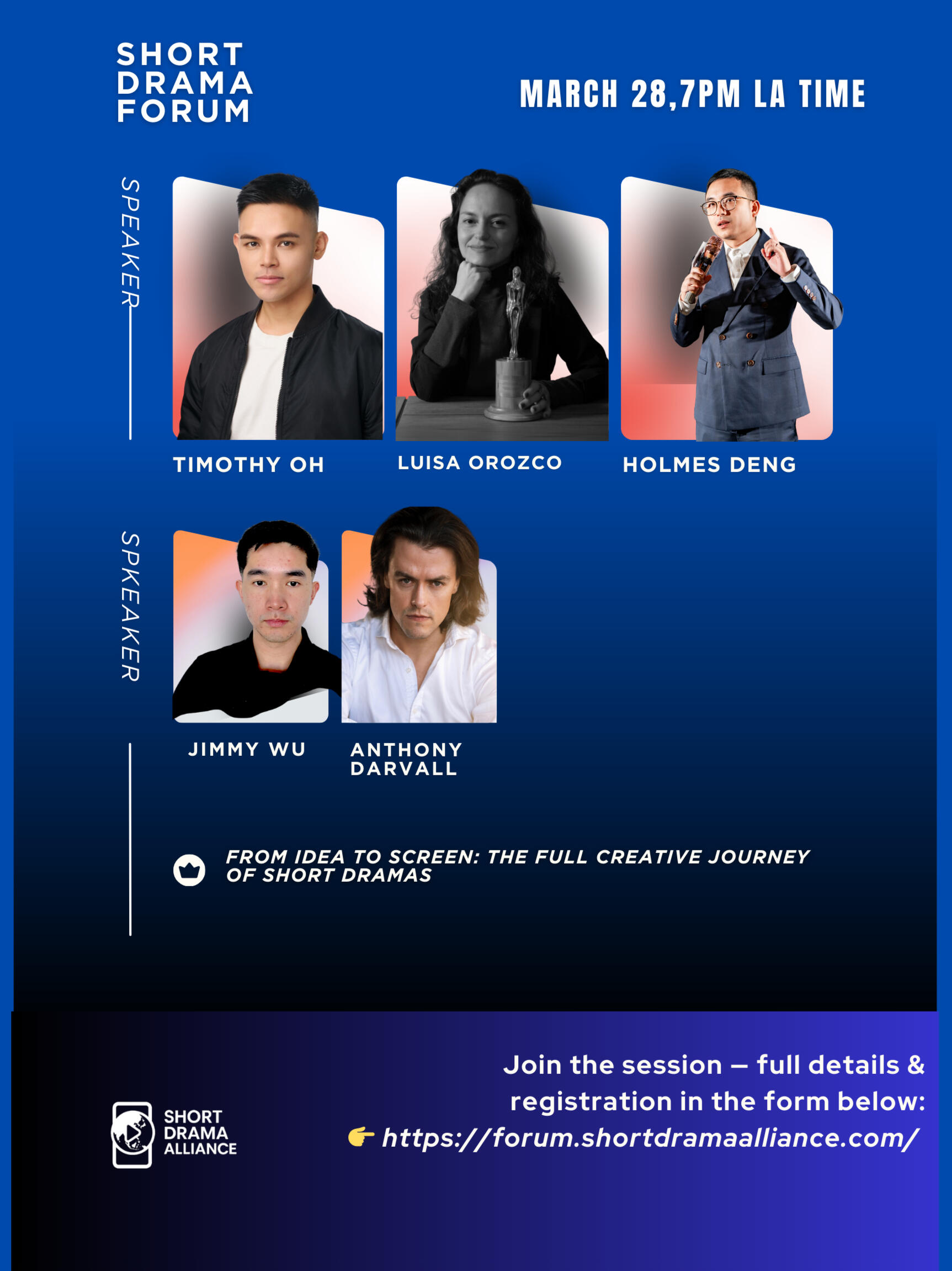 Skip the sharing step and join directly.⸻Replay Access (March 29)Watch the edited roundtable recordings from the forum the following day on the official Short Drama Alliance YouTube channel.This replay will feature curated discussion segments from the forum.